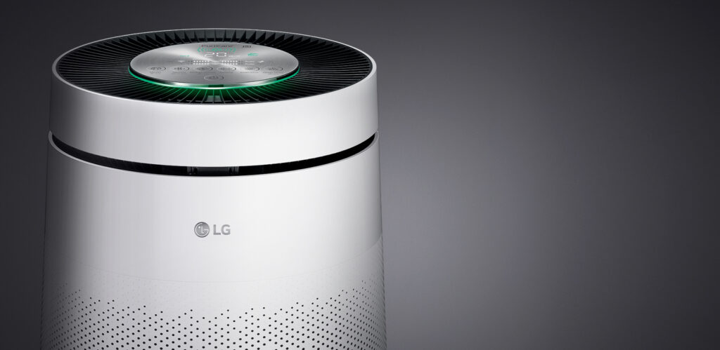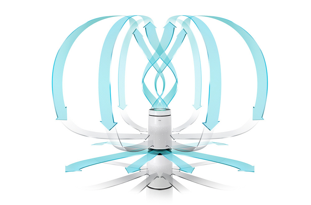 Penulen udara LG PuriCare ™ Menyerap bahan pencemaran di udara dari 360º sudut, dan menyampaikan udara bersih ke mana-mana ruang di rumah anda tidak kira di mana ia dipasang.