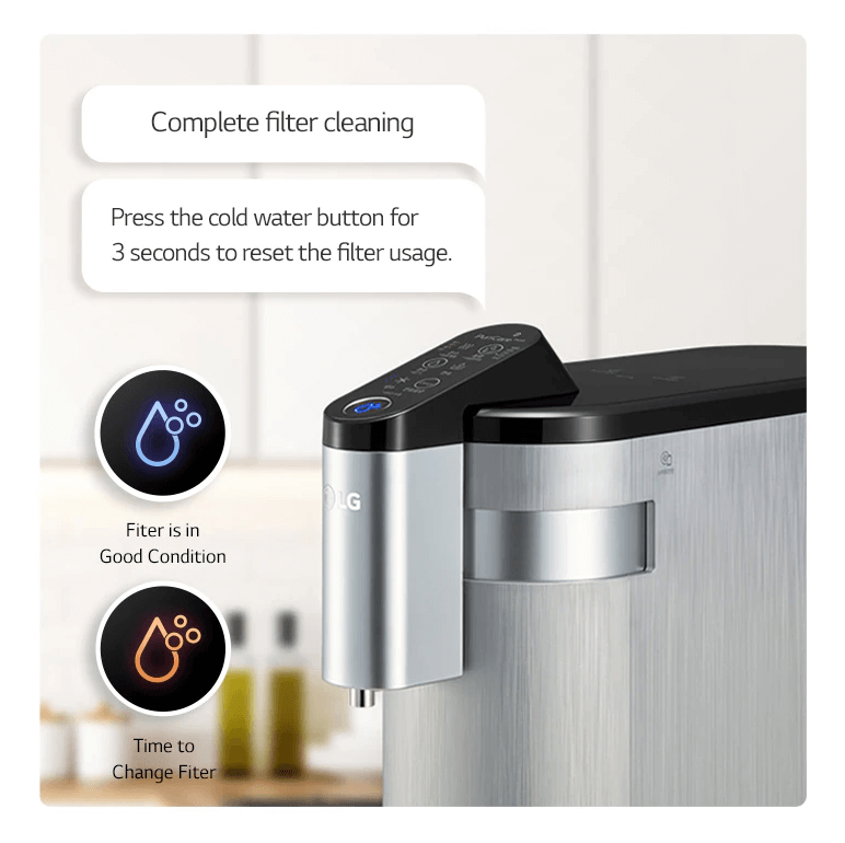 Penulen air LG PuriCare ™ Tankless menyediakan air minuman yang bersih dengan menggunakan penapisan air langsung tanpa tangki air. Ia semudah sentuhan untuk mendapatkan air panas, sejuk dan air suhu bilik. Tankless juga merupakan trend teknologi terkini yang menghilangkan pembentukan mikroorganisma.