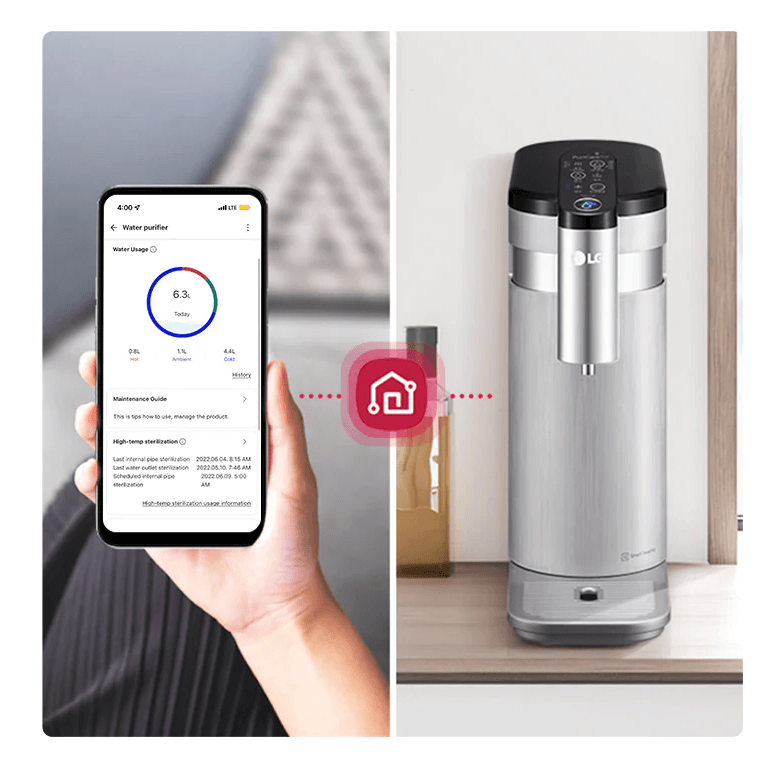 Air panas dibekalkan pada 3 suhu yang berbeza untuk kegunaan seharian daripada suhu susu bayi, untuk secawan teh ke kopi panas, Penulen air LG PuriCare ™ Tankless membantu anda dari kerumitan dengan satu sentuhan sahaja!